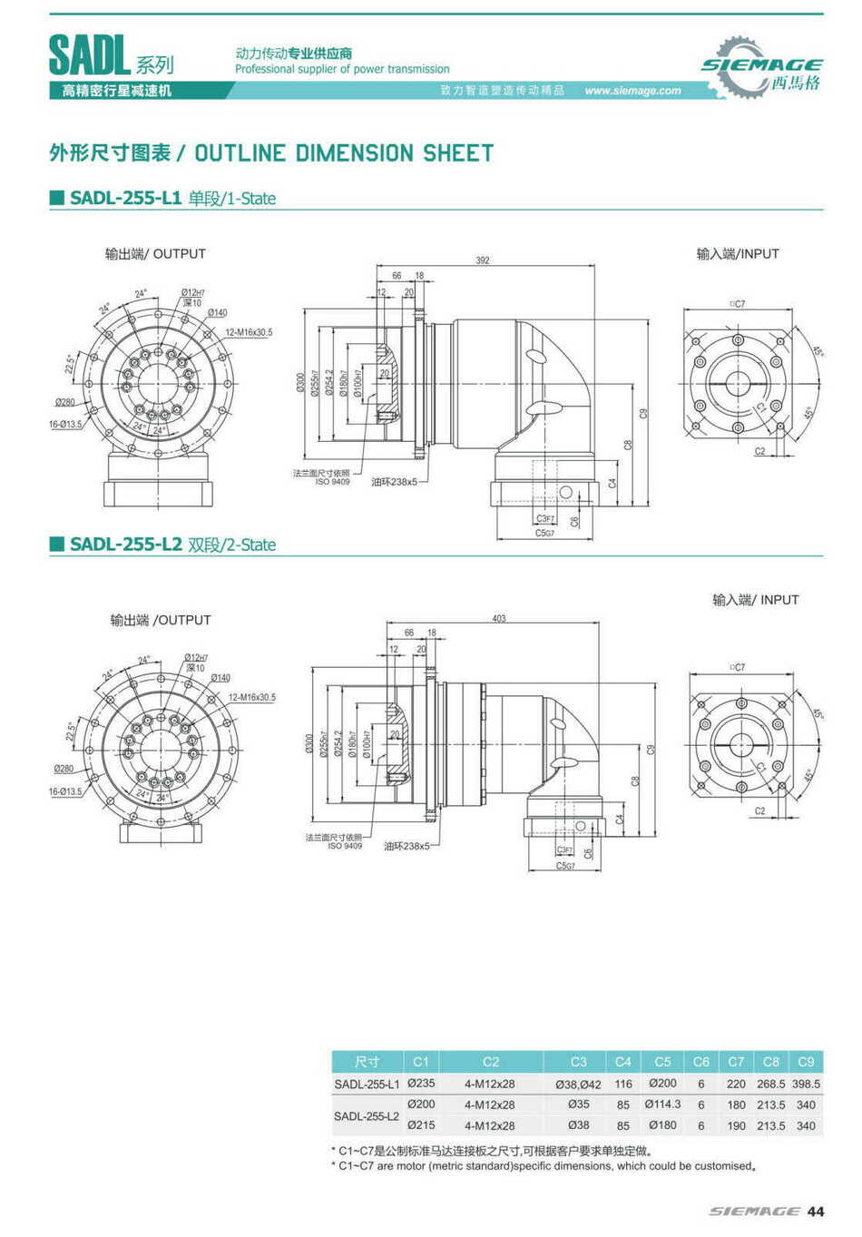 西马格直角行星减速机7种可选尺寸:47MM-255MM